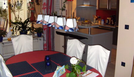 Blick vom Esszimmer in die Küche